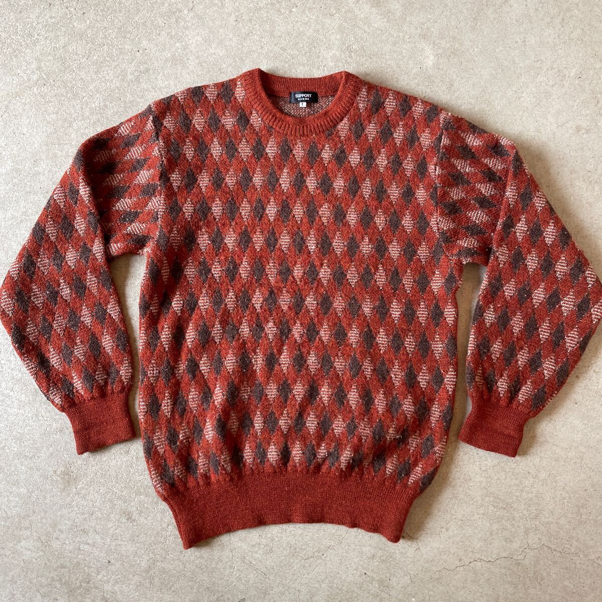- ヴィンテージ アーガイル ニット ウール100% セーター5 ブラウン系 Lサイズ メンズ レディース古着