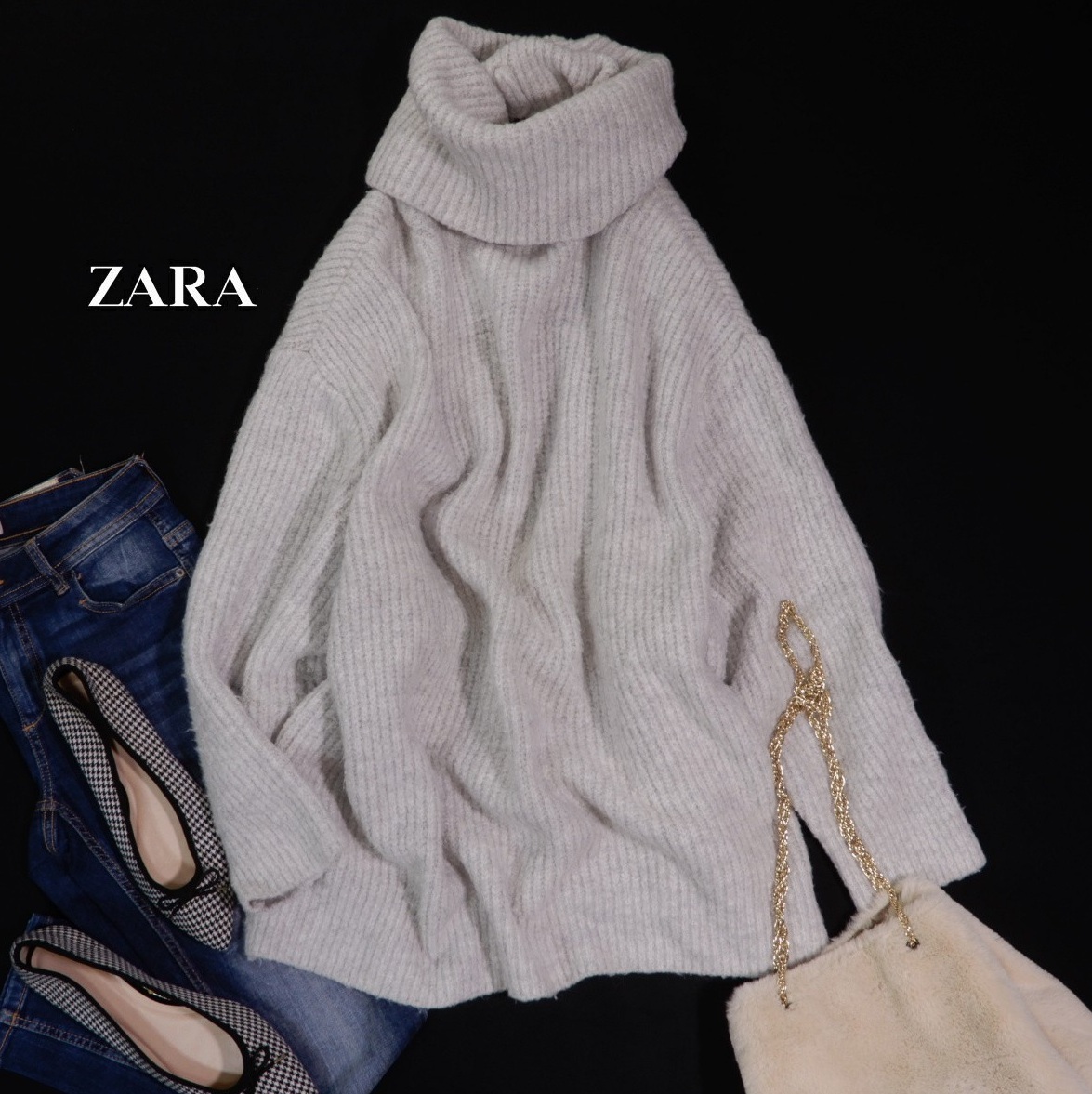- ザラ ZARA KNIT 大人可愛い☆ウール混 畦編み オフタートルネック ふんわりソフトニット プルオーバー セーター S ゆったり オーバーサイズ