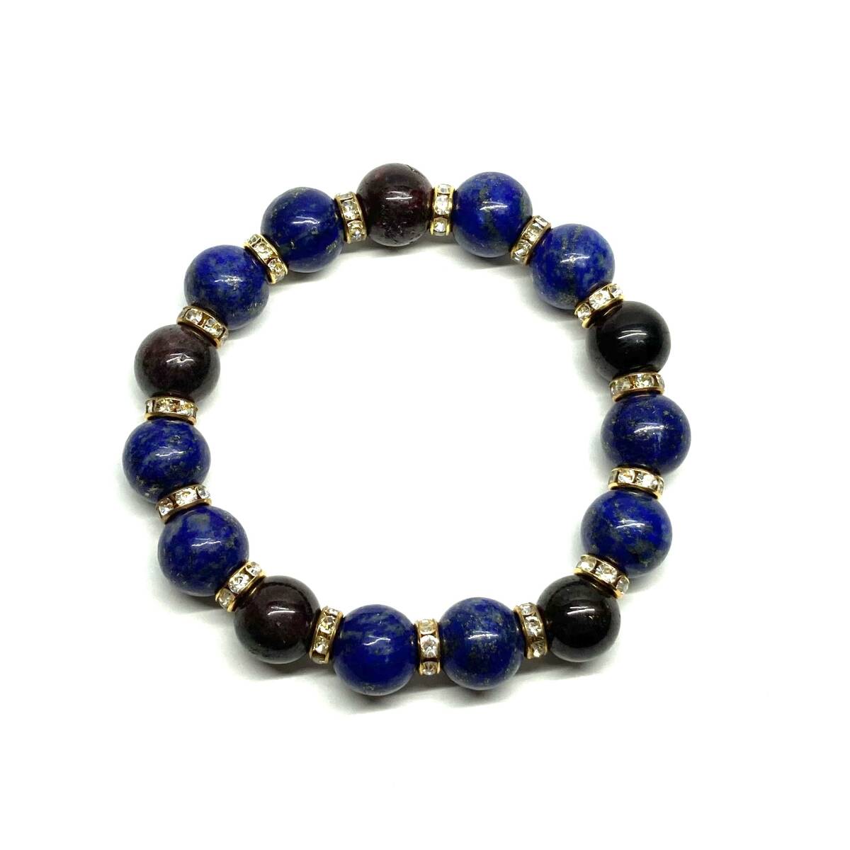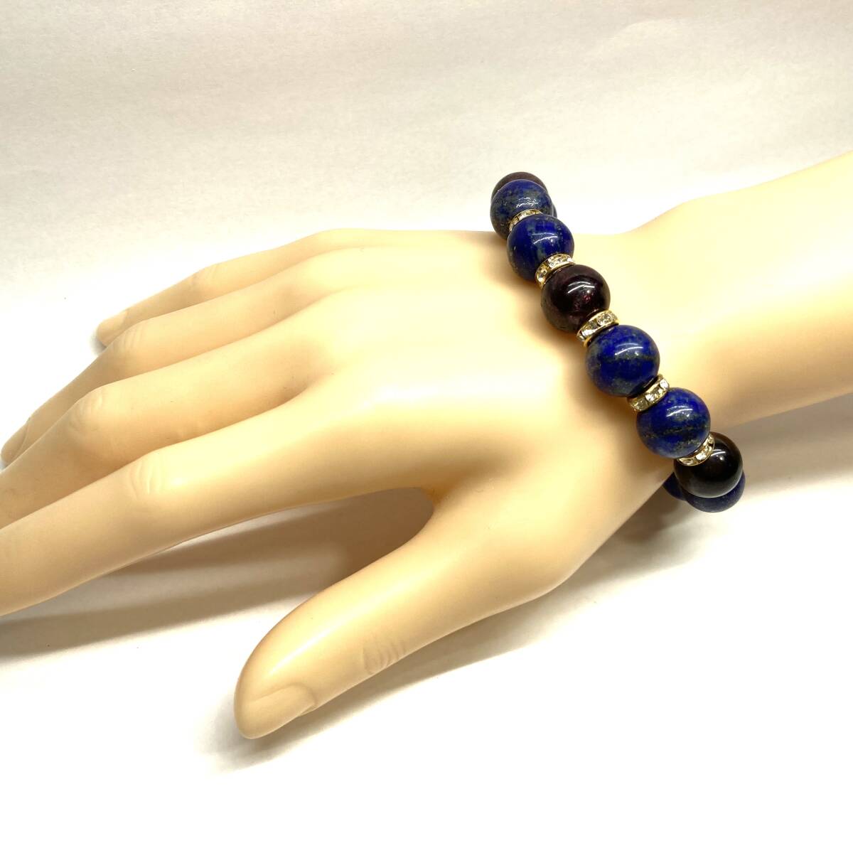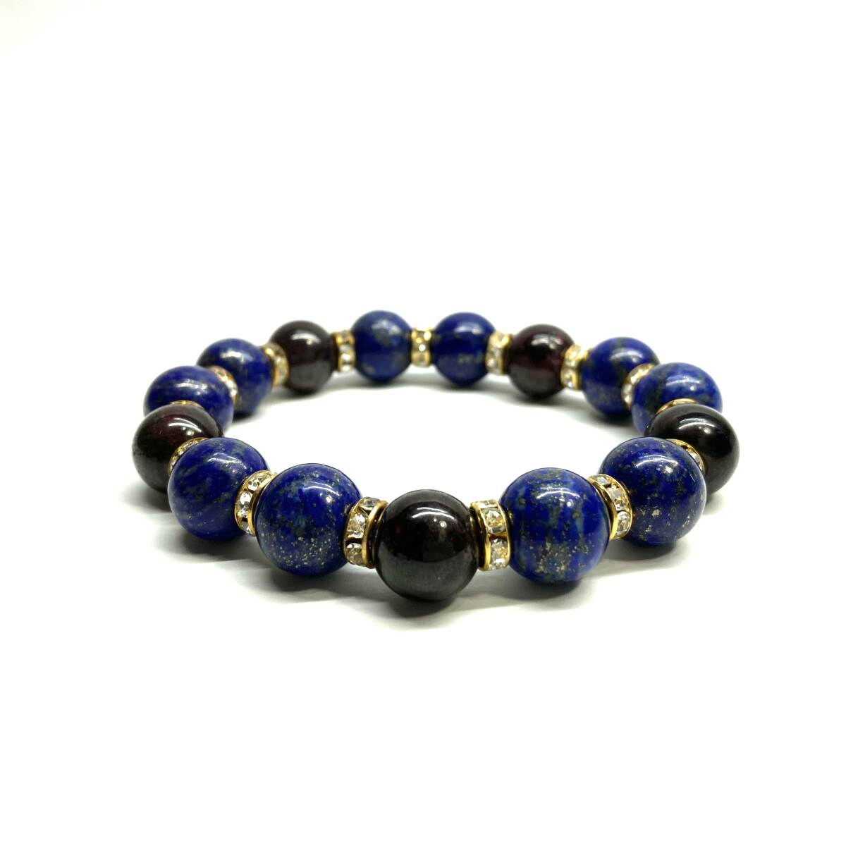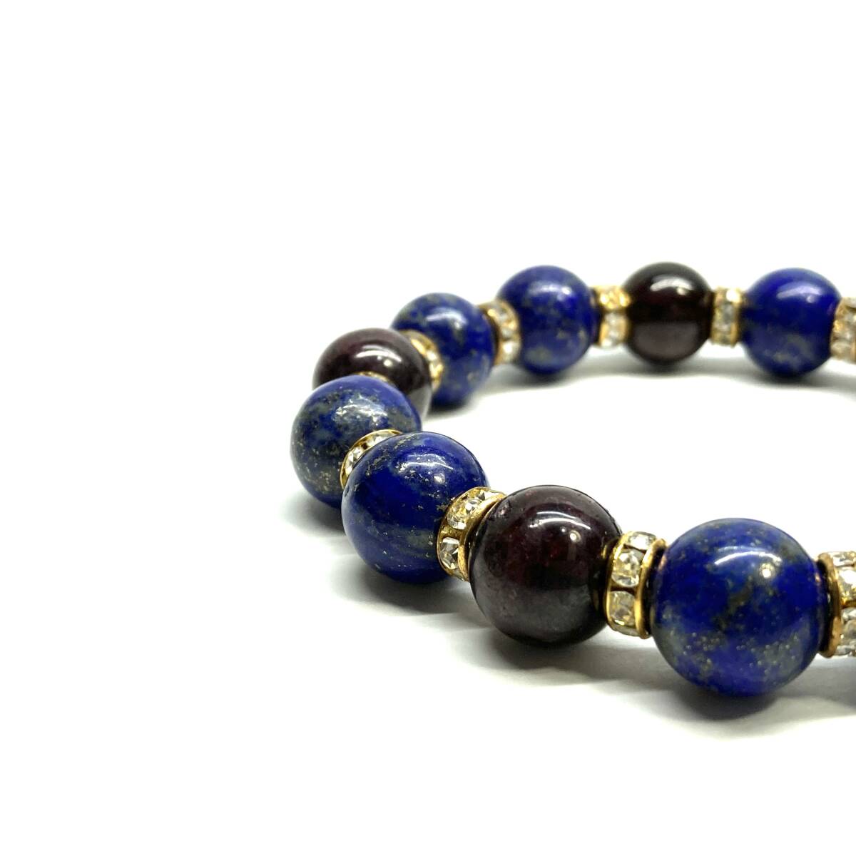 > ラピスラズリ&ガーネット パワーストーン ブレスレット 天然石ブレス (ゴールド) 12mm 幸運 開運 メンズ 男性♪