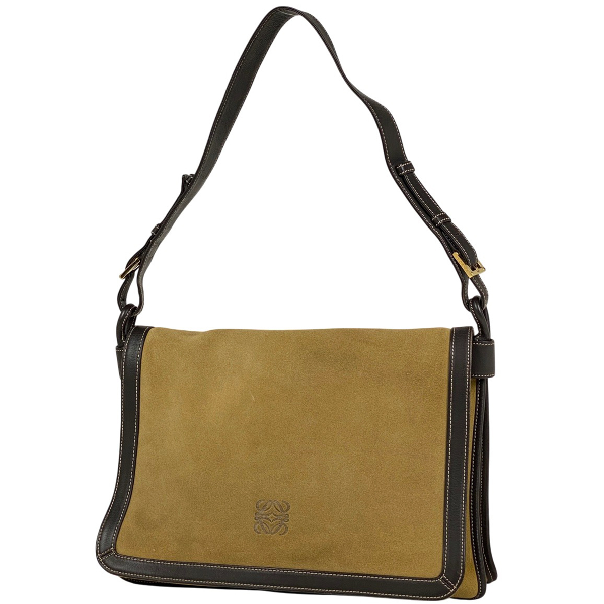 - ロエベ LOEWE アナグラム ショルダーバッグ 肩掛け ショルダーバッグ スエード グリーン ブラウン レディース 【中古】