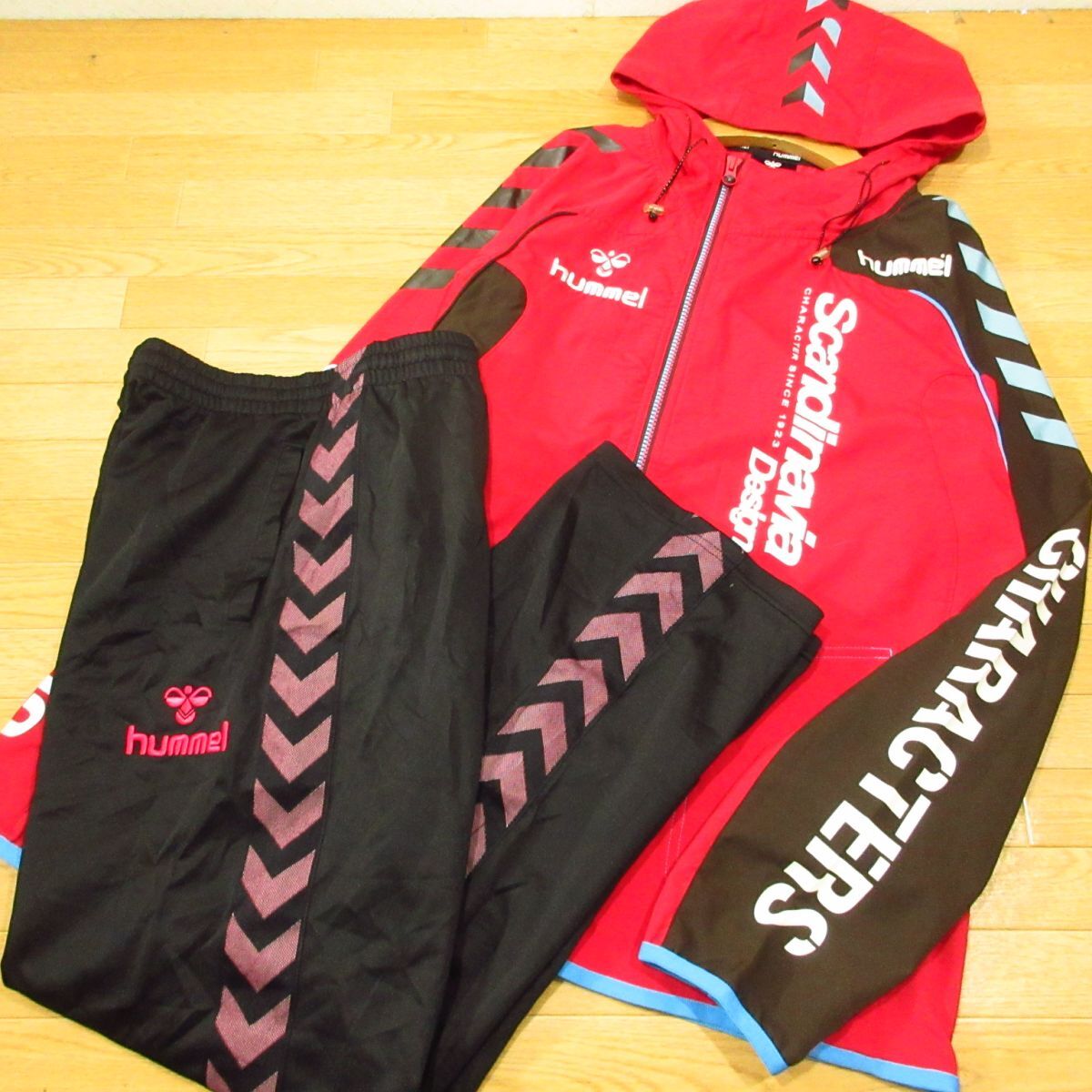 > ◎美品!hummel ヒュンメル L 上下セット ジャージ ジャケット&パンツ メンズ 赤x黒◆BA3819