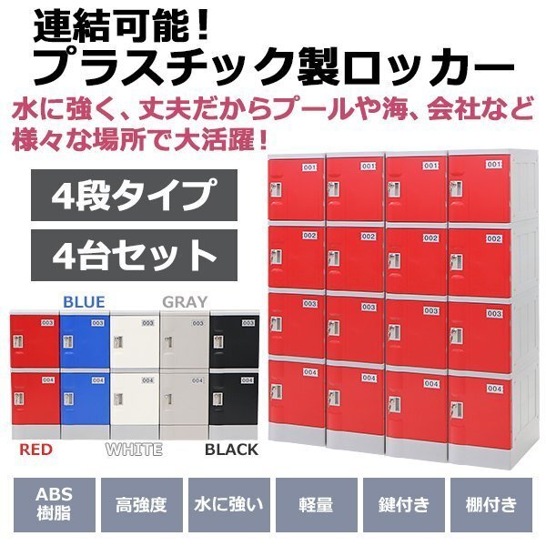 - 送料無料 プラスチックロッカー ロッカー エコノミーモデル 連結可能 4人用 4段 4台セット おしゃれ 選べる5カラー 丈夫 鍵付き ABS樹脂製