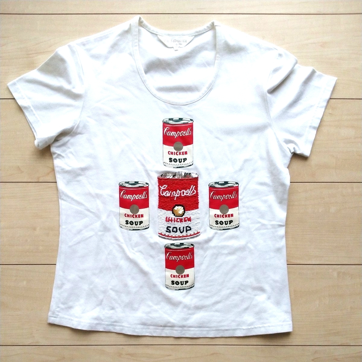 - ■古着『Campbell Chicken Soupの缶詰絵柄を遇ったT-SHIRT』1枚。首周り39㎝。Mサイズ。Via Faburrica。