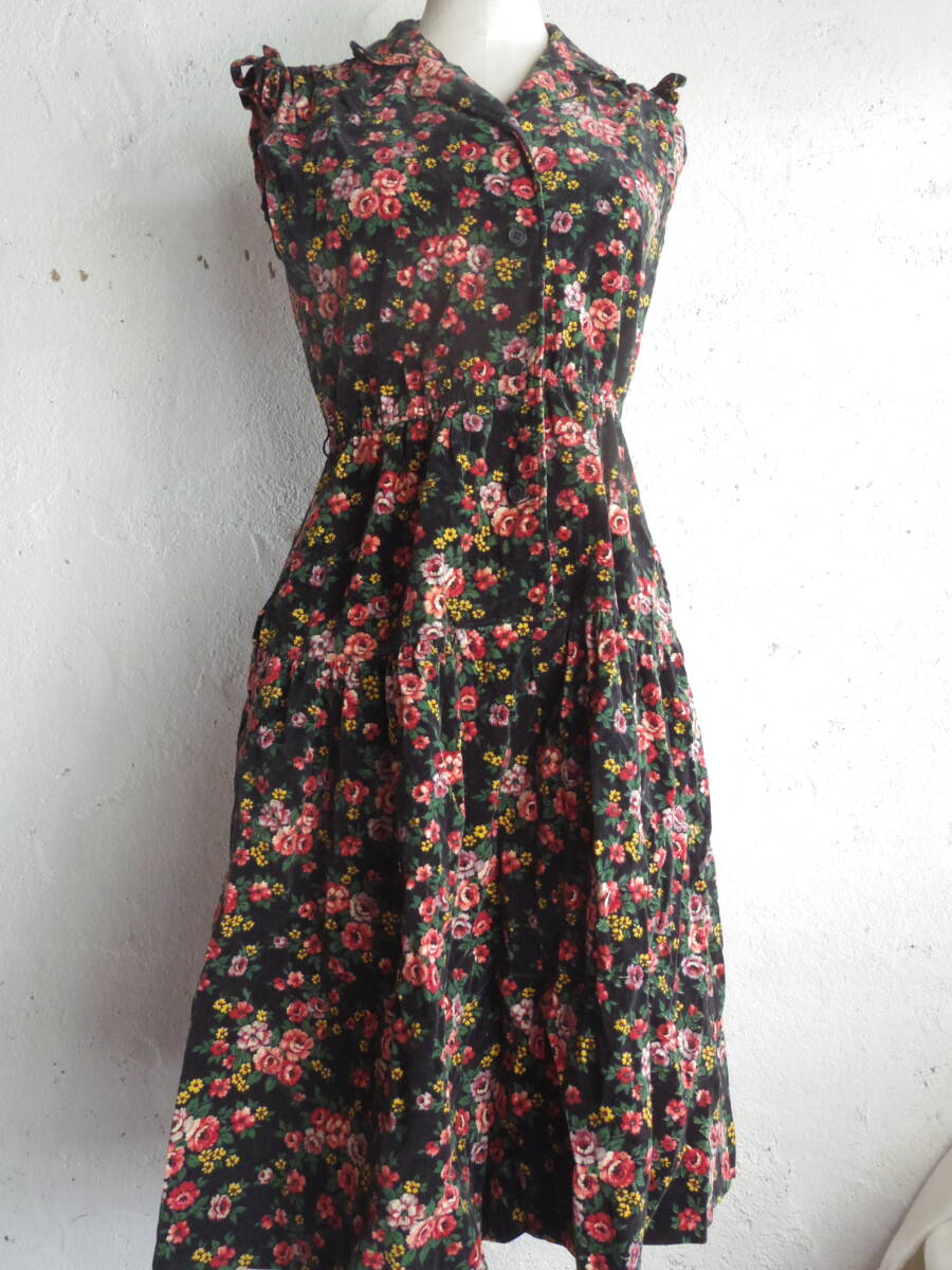- 古着♪レトロVintageベロア花柄おしゃれモダンワンピ♪昭和レトロワンピース70s60s70年代60年代昭和レトロビンテージクラシカルワンピ