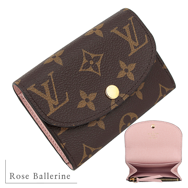 > ルイヴィトン 二つ折り財布 ポルトモネロザリ M62361 モノグラム ローズバレリーヌ 1444