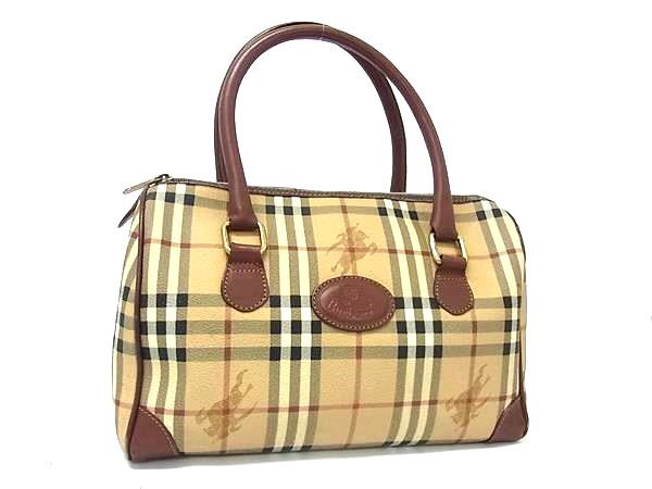 - 1円 Burberrys バーバリーズ ノバチェック PVC×レザー ボストンバッグ ハンドバッグ トートバッグ ベージュ系×ブラウン系 GB2168