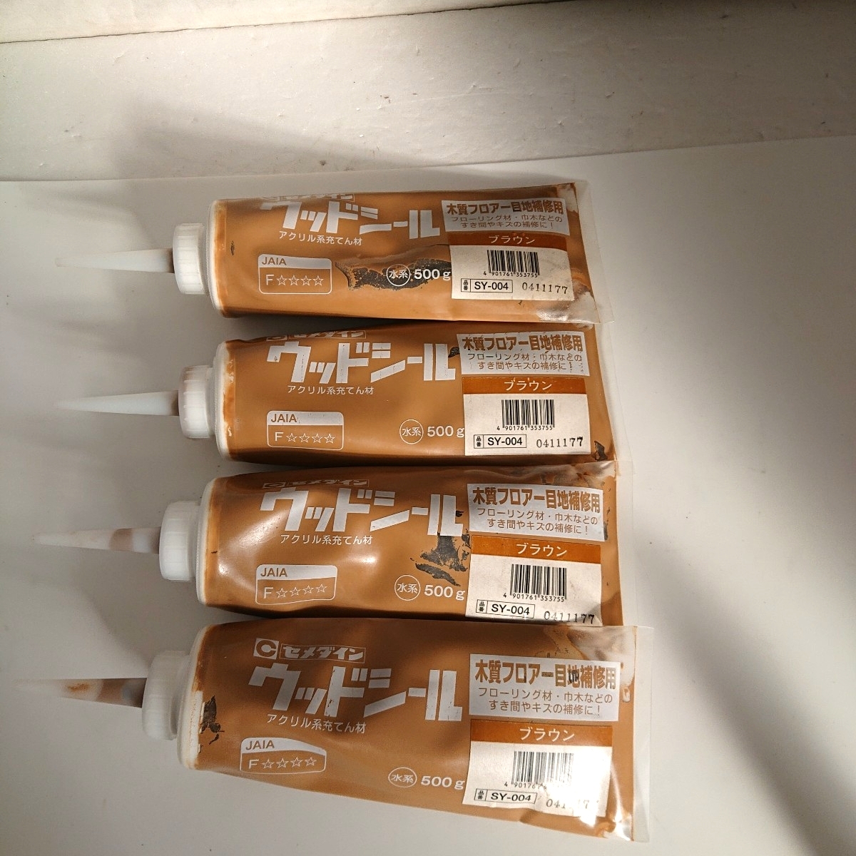- 【まとめ売り4点】セメダイン木質フロアー目地補修用充てん材 ウッドシール ブラウン 500g チューブ SY-004 当時物 現状品 ぷらみ 1027 105