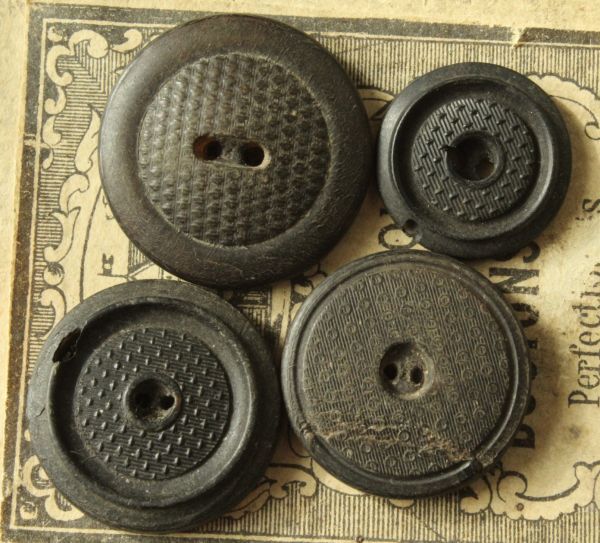 - 即決 プレスドホーン ボタン 4個 φ16~22mm 黒染め ブラック 角ボタン フランス輸入 ヴィンテージ