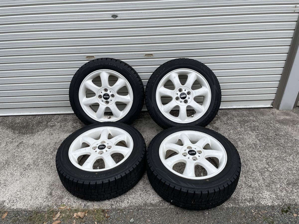 - MINI R55 R56 純正ホワイトホイール バリ溝ダンロップスタッドレス 4本セット