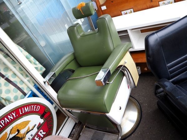 - 苫小牧発◆タカラベルモント製 ヴィンテージ 理容椅子 シャンプー台 カットチェア バーバースタイル 50's ジャンク・現状◆