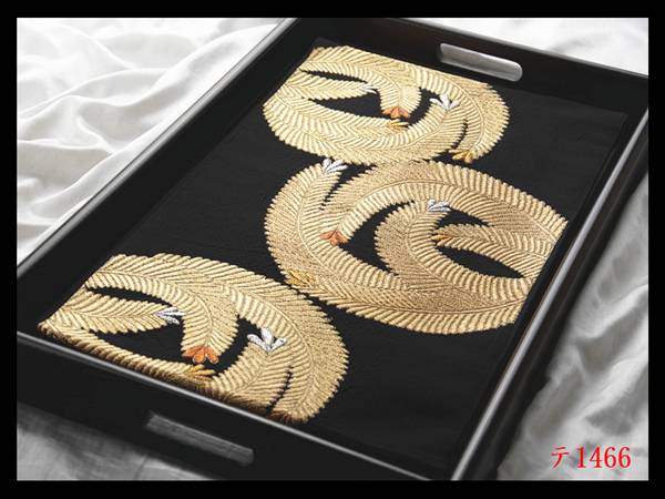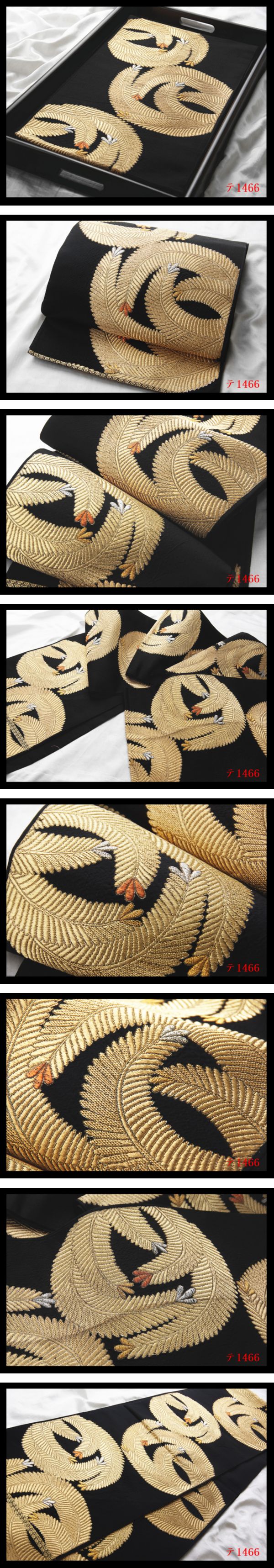 - 蔵【テ1466】厳選逸品 黒色地 気品豊かに 正絹純金糸六通高級美術袋帯 ◇検◇簪着物名古屋帯和装小物帯締め