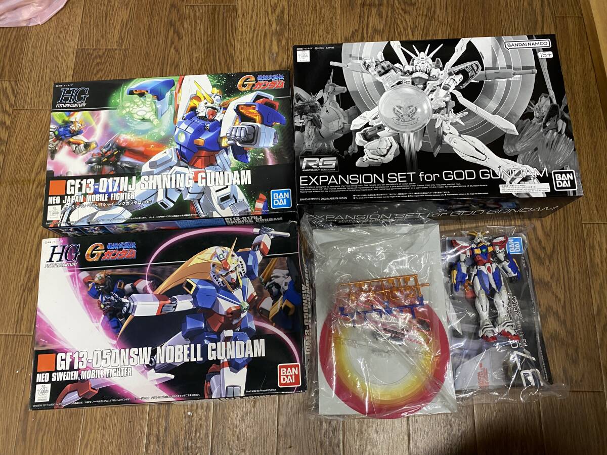 - RG1/144ゴットガンダム・RGゴッドガンダム用拡張セット・HGノーベルガンダム・HG 1/144 シャイニングガンダム
