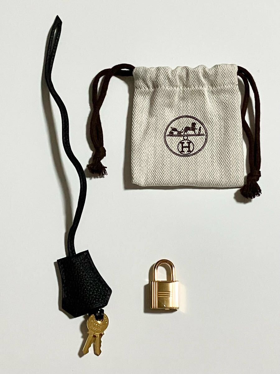 - 未使用 HERMES パドロック & クロシェット ゴールド ブラック エルメス カデナ 南京錠 鍵 キー バッグ チャーム キーリング キーホルダー