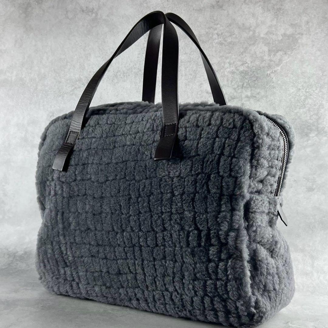- 651 ブルネロクチネリ グレー ファー ボストンバッグ ハンドバッグ