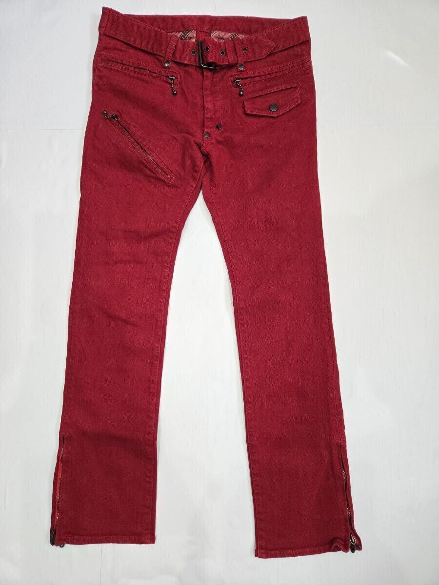 - ナンバーナイン numbernine 05ss エミリー期 ジップベルトスキニーデニムパンツ サイズ2 レッド 25042