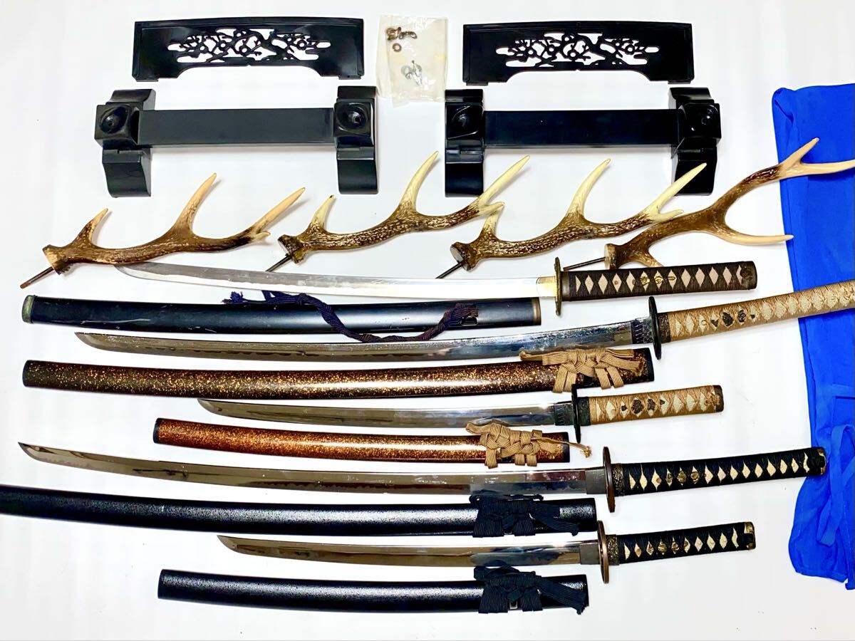 > ★ 1円~大量 模造刀 5点 まとめ商品 刀 大小 軍刀 コレクション 日本刀 刀剣 居合刀 練習刀 撮影小物 舞台 レトロ まとめ売り セット
