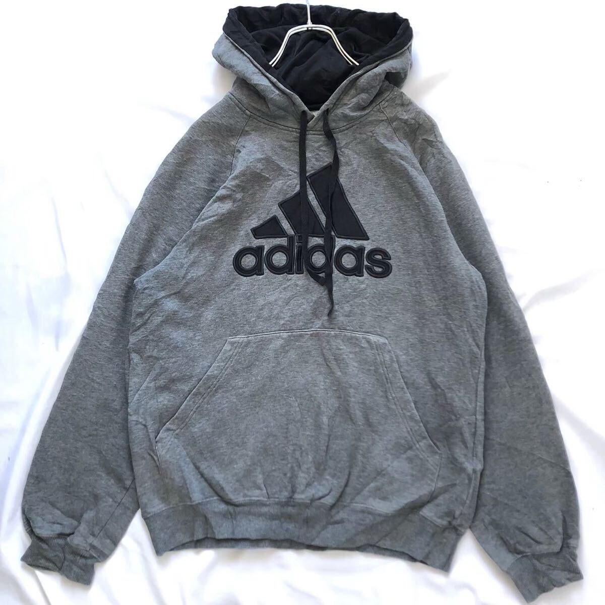 - adidas パーカー ビッグロゴ グレー Sサイズ 裏起毛 フーディー プルパーカー