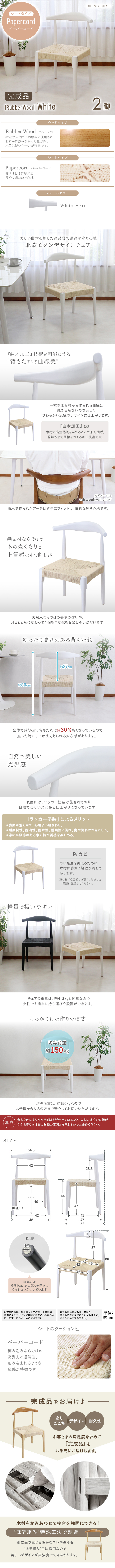 - 送料無料 ダイニングチェア 天然木 ラバーウッド 2脚セット 北欧チェア 木製 曲木 ペーパーコード ホワイト(ナチュラル)