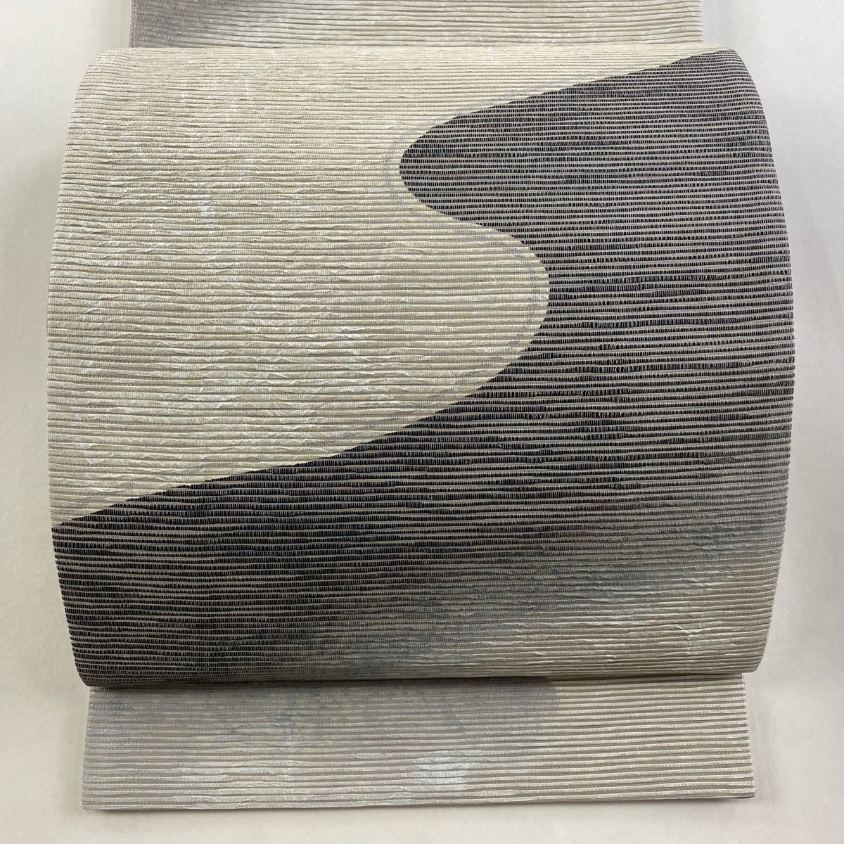 - 【美品】 袋帯 秀品 手もみ引箔 霞 幾何学模様 銀通し 灰茶 六通 正絹 【中古】