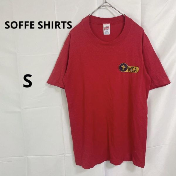> USA製◇SOFFE ソフィーシャツ 半袖ロゴ入りTシャツ【S】コットン混 春夏服 赤 レッド シンプル カジュアル 普段着