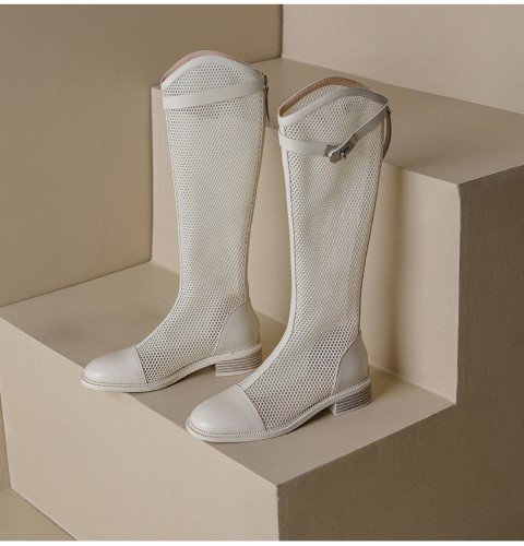- ロングブーツ 薄手 ローヒール ラフヒール ハイブーツ シンプル カジュアル レディースシューズ 36 グレー