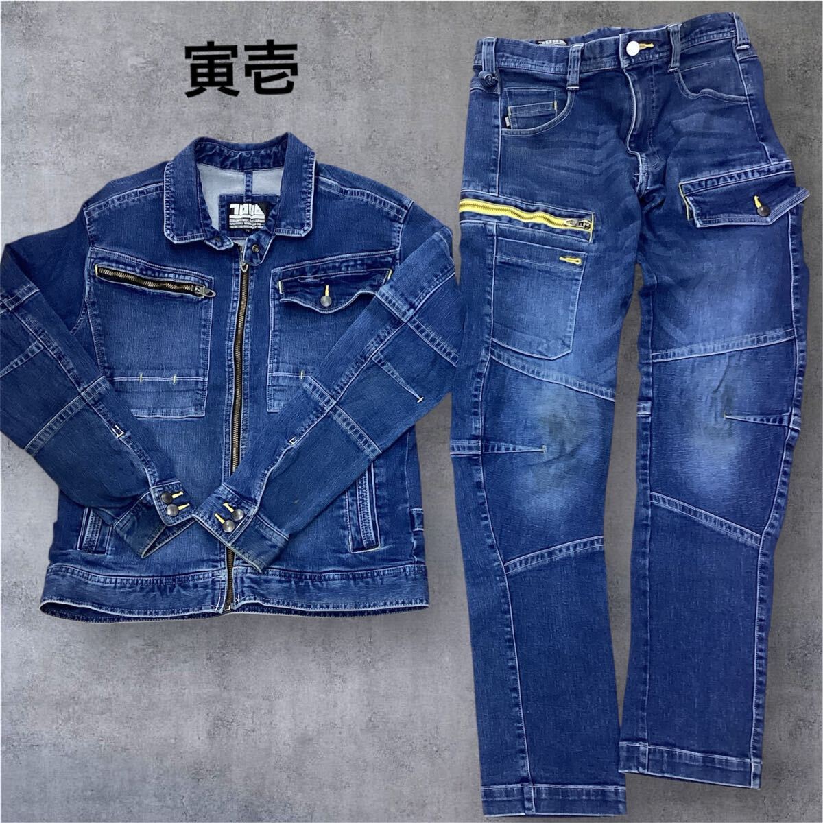 - CO■ TORAICHI 寅壱 メンズ 作業着 上下セット Mサイズ ネイビー デニム ジャケット ジージャン 長袖 ストレッチ素材 セットアップ