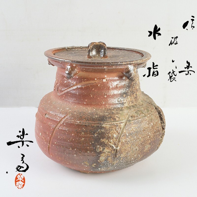 - 茶道具 信楽焼 高橋楽斎造 破レ袋 水指 共箱 CTAP