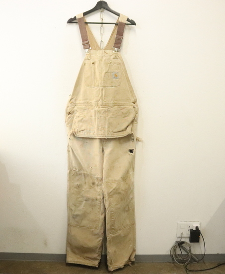 - J981 90sビンテージ カーハート ダックオーバーオール エプロン付き USA製■1990年代製 約XLサイズくらい ブラウン ワーク ダブルニー