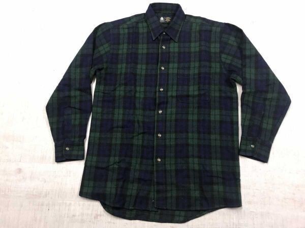 > ボラント Volunt オールド レトロ 90s 韓国製 古着 ウール100% 長袖 ブラックウォッチ チェック フランネル シャツ メンズ M 紺