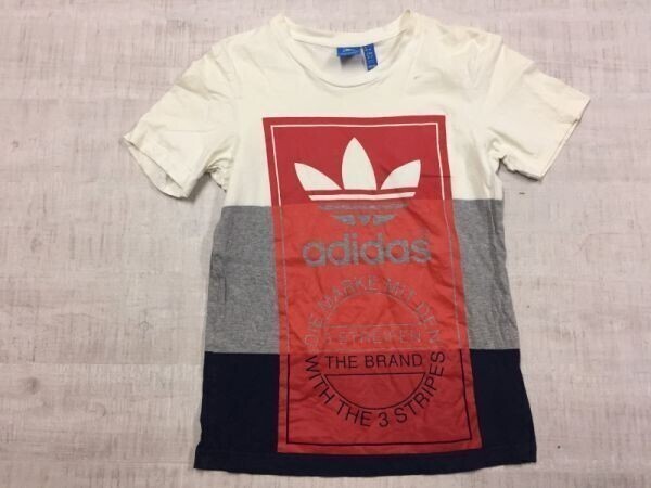> アディダス adidas トレフォイル ストリート スポーツ 切替 半袖Tシャツ カットソー メンズ XS 白グレー黒