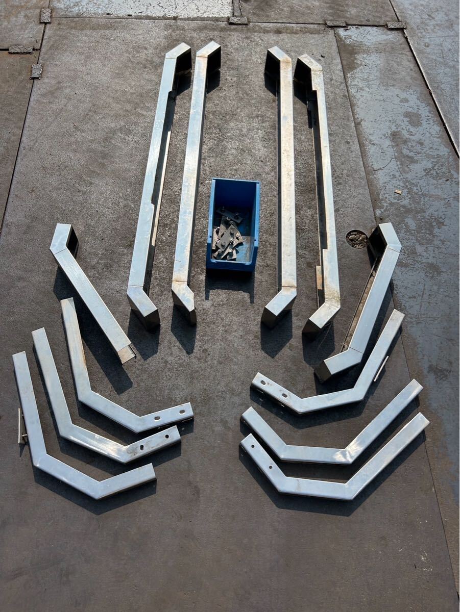 - [引取限定★兵庫県]ステンレス製 2tトラック用?サイドバンパー デコトラ 左右 フェンダー セット まとめて 要加工 角パイプ ステー 現状