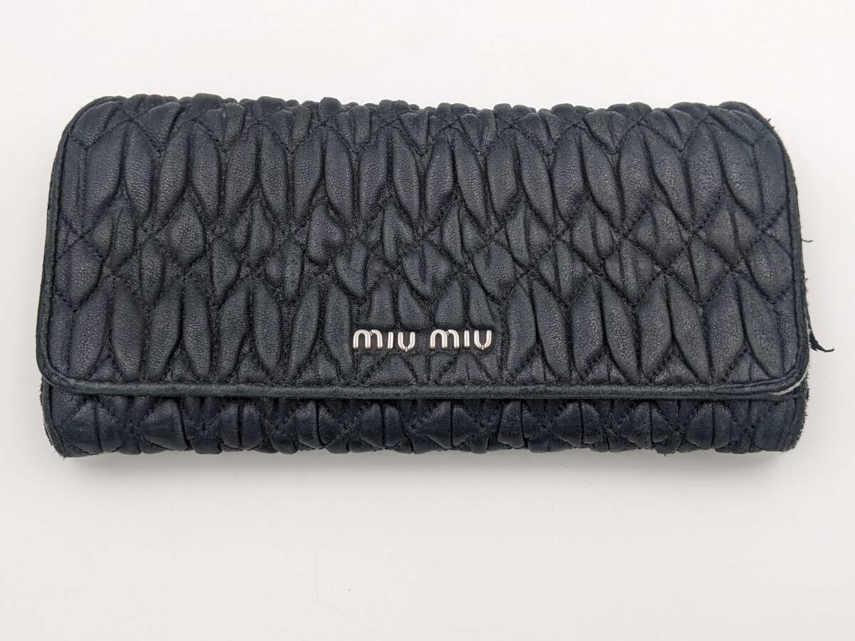 - T/miu miu ミュウミュウ 長財布 ロングウォレット ブラック系 財布 革 レザー レディース 札入れ 小銭入れ ファッション 服飾小物 趣味