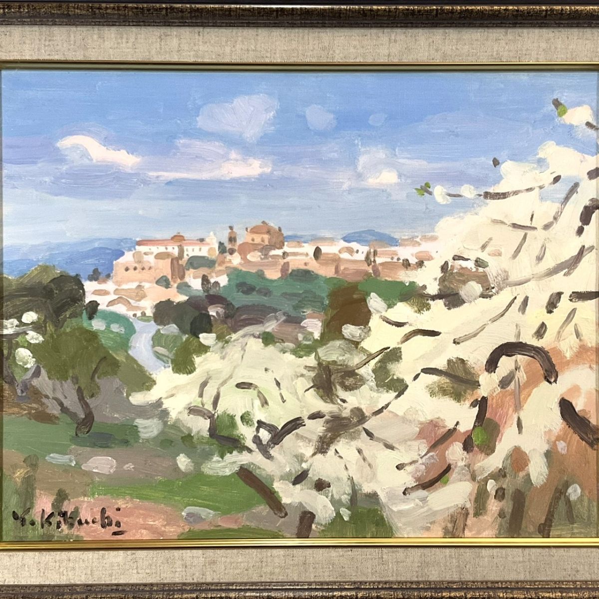 真作■油彩■菊地洋二■『アンダルシアの春(ロンダ)』■一水会委員■師・吉崎道治■額付絵画
