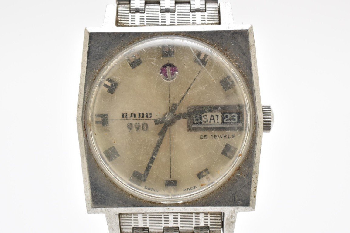 > RADO ラドー 990 腕時計 メンズ 自動巻き シルバー デイデイト 3針 スクエア型 25ジュエル ステンレススチール