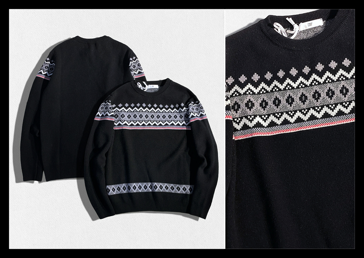 > 定価3.1万 PMDS PREMIUM MOOD DENIM SUPERIOR 余裕のあるスタイルを演出するノルディック柄ウールニットセーター クルーネック イタリア製S
