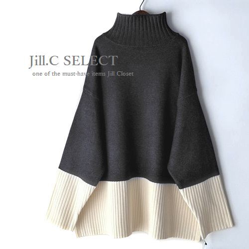 > 新品【送料185円】上質感♪秋冬のお洒落が楽しくなるハイセンス&バイカラー*ハイゲージニット*ストレッチ プルオーバー4231.CHARCOAL