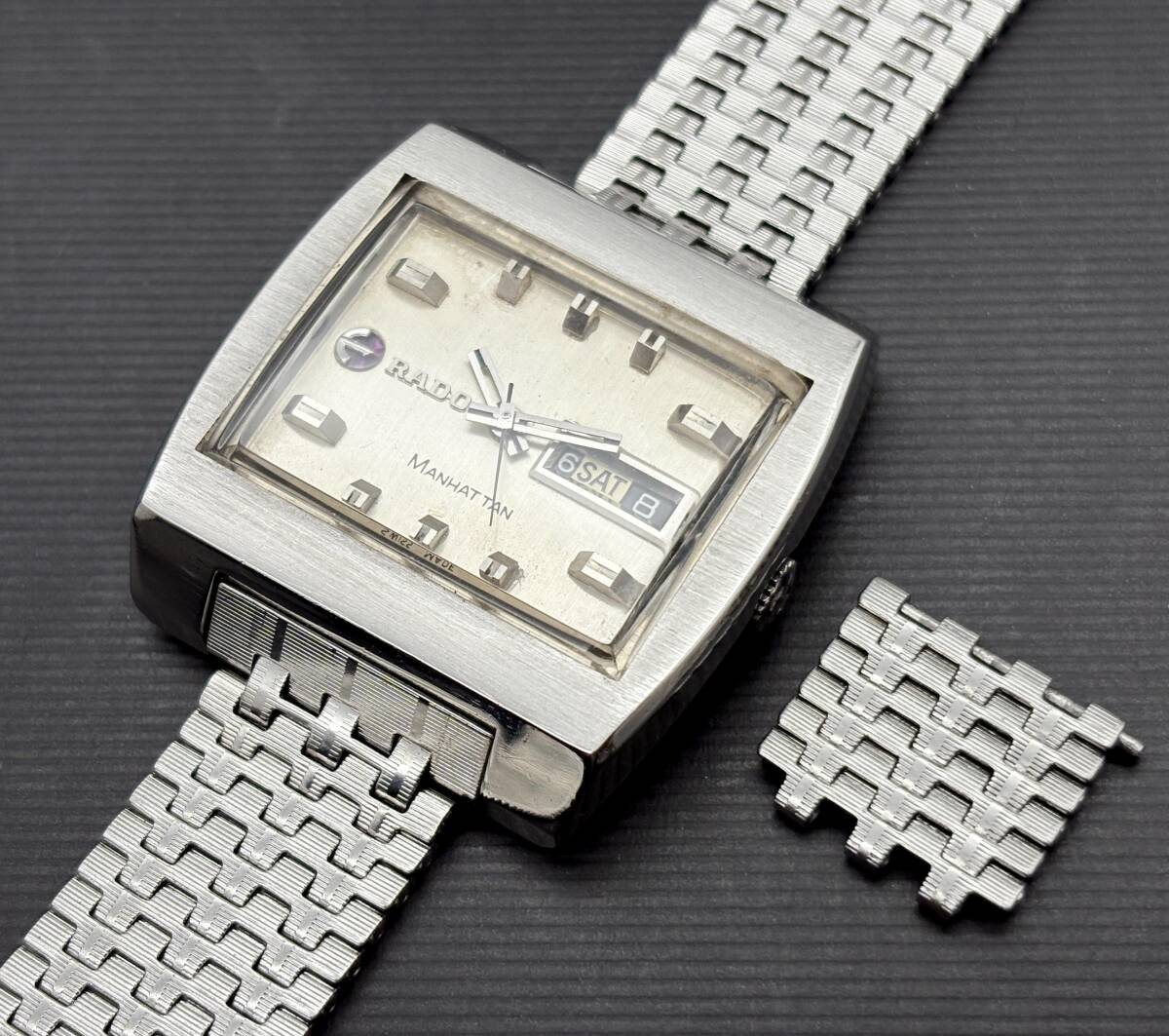 - 【稼働品 WORKING/予備コマ付】RADO/ラドー/manhattan/マンハッタン/シルバー文字盤/カレンダー付/ステンレス/シルバー色/自動巻き