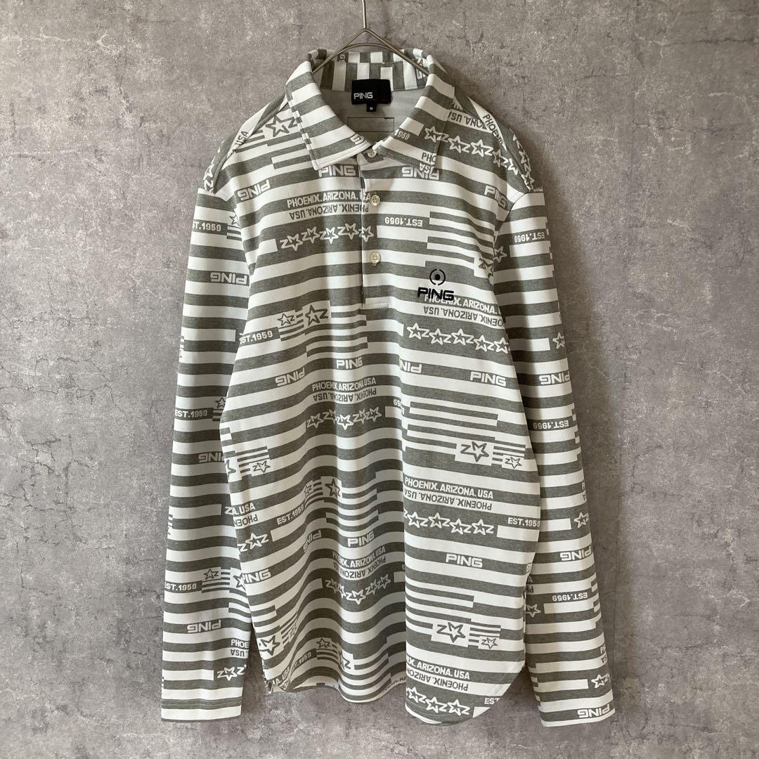 - PING ボーダーポロシャツ 長袖 ゴルフウェア 柄シャツ Sサイズ