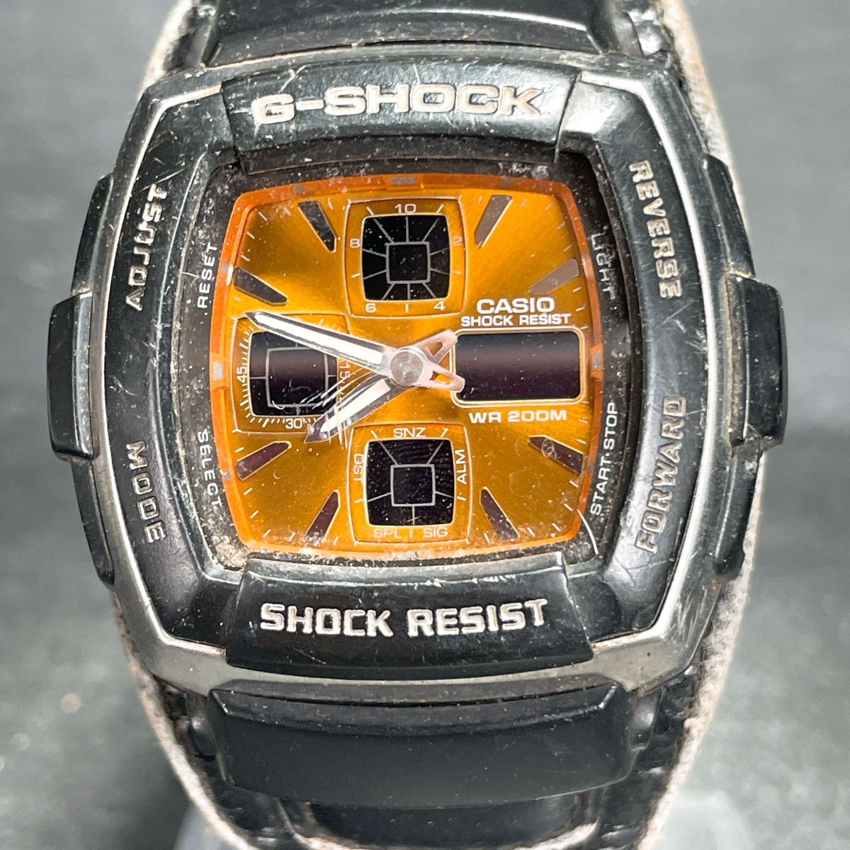 > CASIO カシオ G-SHOCK ジーショック G-350L 腕時計 アナデジ クオーツ 多機能 カレンダー オレンジ文字盤 スクエア レザーバンド ブラック