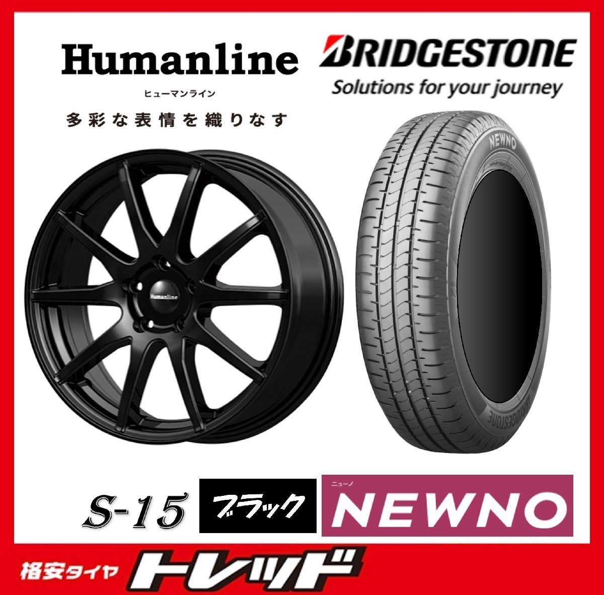 > 数量限定 2023年製)新横浜師岡店 新サマータイヤアルミ4本set Humanline S-15 15インチ5.5J4穴100+43 ブリヂストン ニューノ 185/65R15