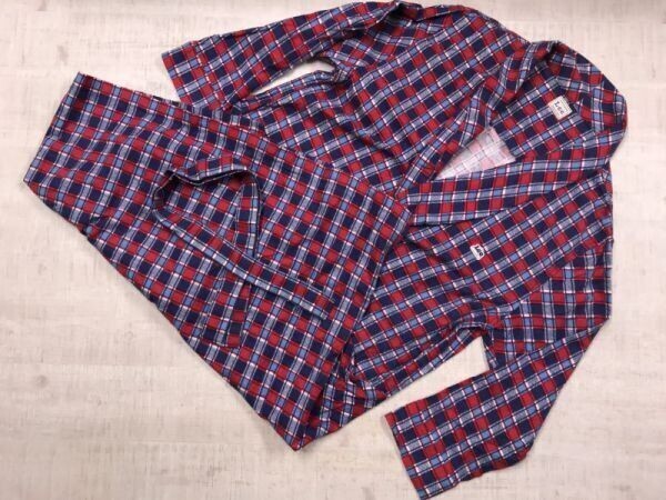 > リー Lee アメカジ ワーク チェック ヘチマ襟 ショールカラー コットンネル ガウン ジャケット メンズ コットン100% S 赤/青