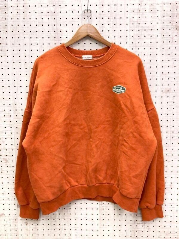 > OH JIN-HO メンズ 韓国ファッション Radio Days Texas レトロプリント ドロップショルダー スウェットトレーナー オレンジ