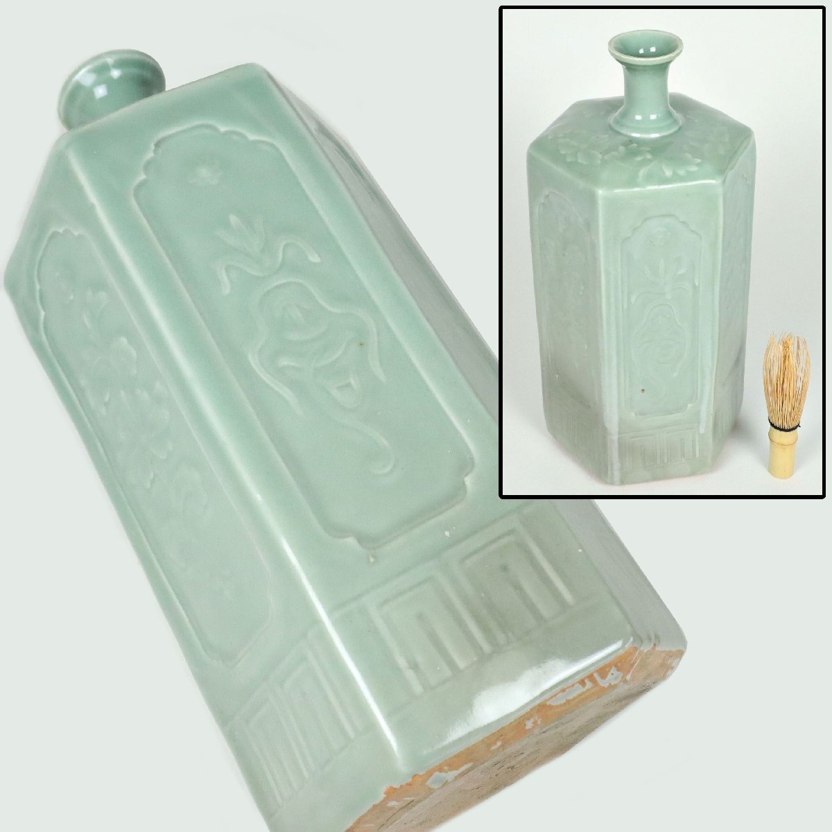 > 江戸後期 三田焼 六角徳利 保命酒徳利 鞆徳利 備後 鞆の浦 酒器 陶磁器 骨董品 美術品 9845lqN
