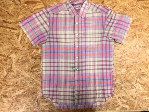 > ラングラー Wrangler カラフル マドラスチェック 半袖シャツ メンズ 綿100% M オレンジ ピンク 青