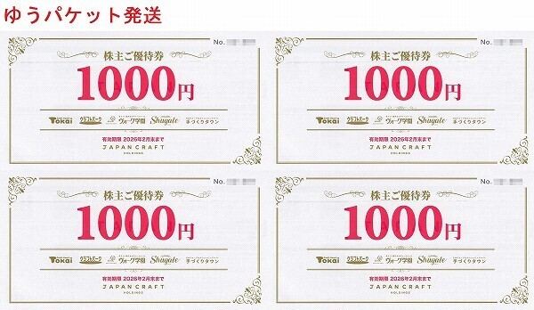 - 送料無料! ジャパンクラフト 株主優待券 4000円分 藤久、クラフトハートトーカイ