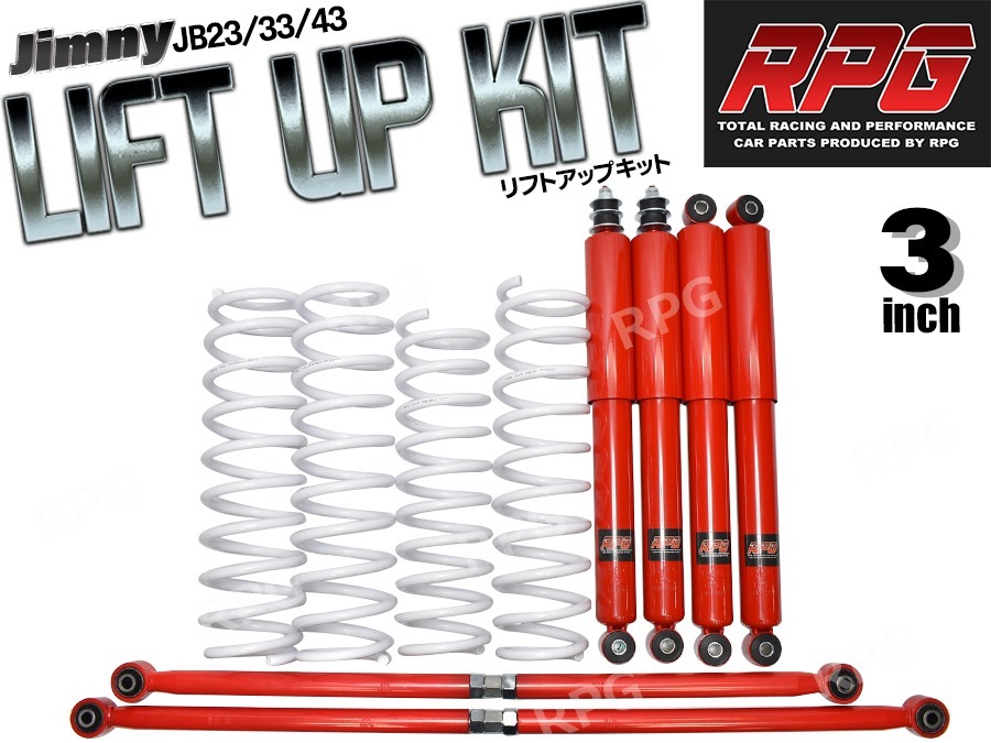 - ジムニー JB23/JB33/JB43 3インチリフトアップキット RPGロングショック赤 ラテラル赤 コイル白