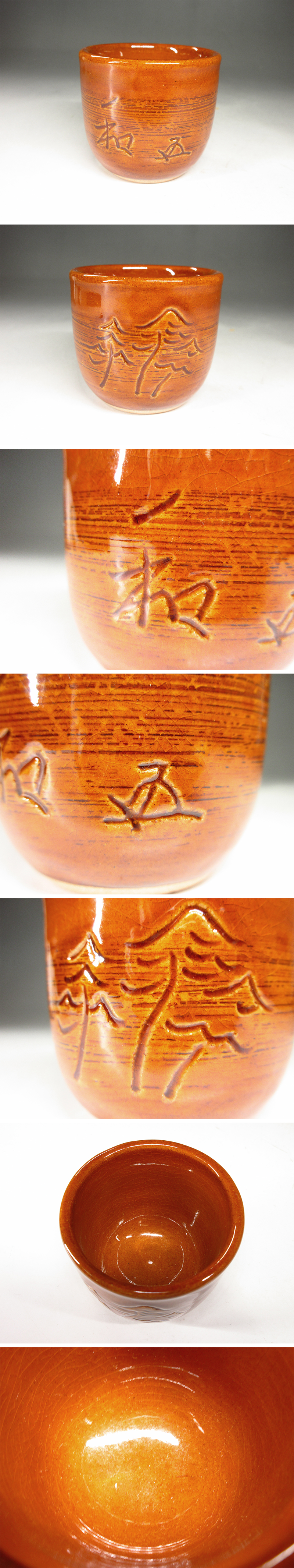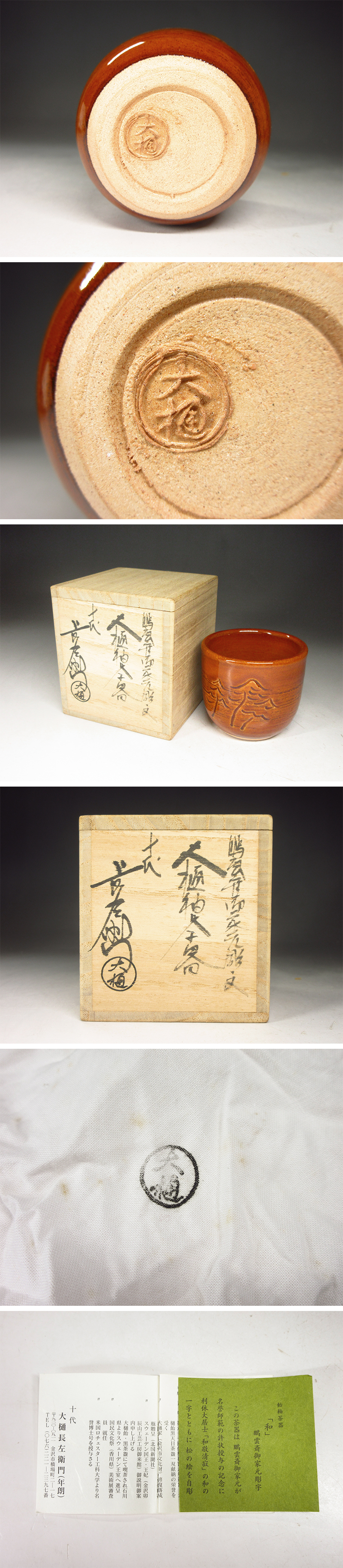 - 【漸】十代『大樋年朗(大樋長左衛門)』造 鵬雲斎彫文 大樋釉茶器 共箱 共布 栞付き 茶道具 本物保証【HY2775】