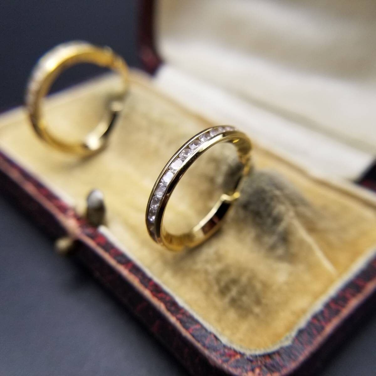 - クリアストーン インレイ エタニティ 925 シルバー ヴィンテージ フープ ピアス 銀 ゴールドトーン 小ぶり 上品 エレガント Y25-G