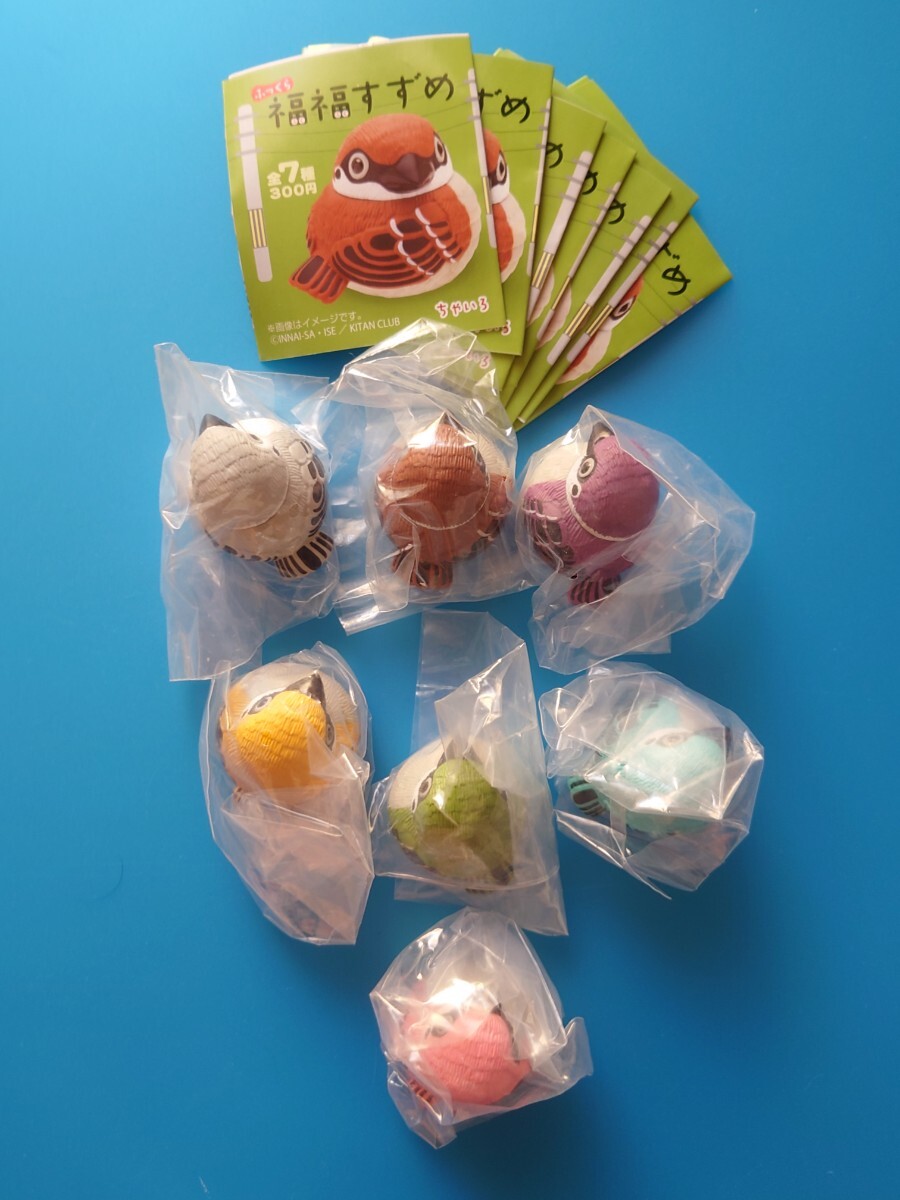 - 希少!ふっくら福福すずめ 全7種セット(ひとつ300円のガチャ×7個)2016年発売 奇譚クラブ 未開封品を撮影のため開封 リーフレットあり