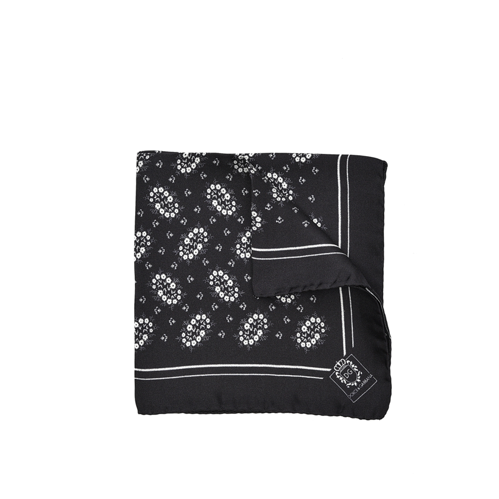 > 厳選 新着 新品 ドルチェ&ガッバーナ DOLCE & GABBANA ポケットチーフ メンズ シルク 100% 総柄 ブラック 409047